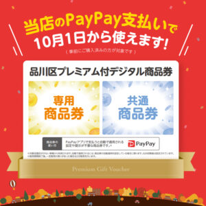 「品川区プレミアムデジタル商品券」も当店で使えます
